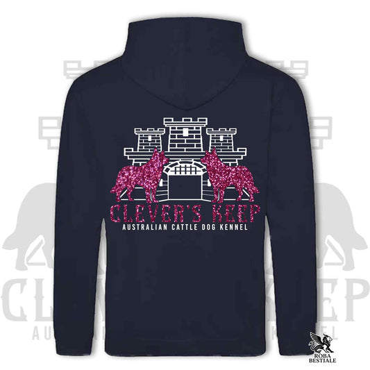 Felpa CLEVER'S KEEP Kennel - dettagli PINK GLITTER - Con Cappuccio e Tasconi, Unisex, in Tanti Colori! - dalla XS alla 5XL