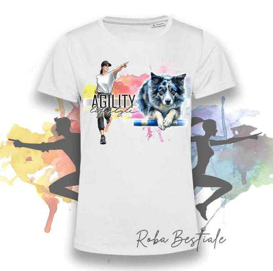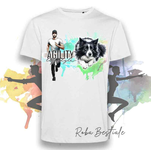 T-Shirt AGILITY Lifestyle - BORDER COLLIE Bianco e Nero - Design "GIRL" o "BOY" - Bianca, Uomo o Donna - dalla XS alla 5XL