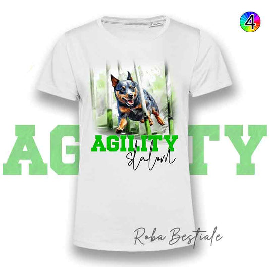 T-Shirt AGILITY SLALOM - AUSTRALIAN CATTLE DOG Blue - Scritta in 4 colori a scelta - dalla XS alla 5XL