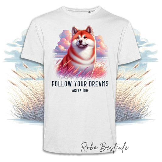 T-Shirt QUOTES "DREAM" - AKITA INU Rosso - Bianca, Uomo o Donna - dalla XS alla 5XL