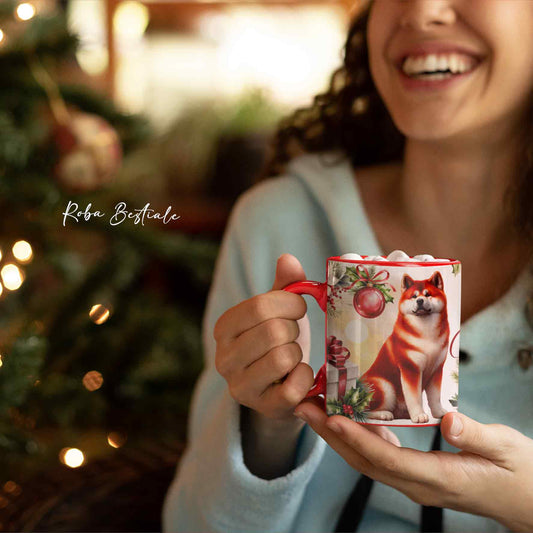 Tazza COZY WINTER - AKITA INU Rosso - In Ceramica, con manico color Oro - 330 ml