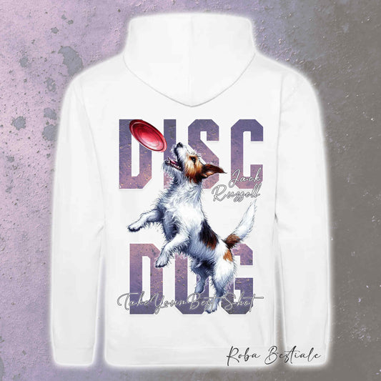 Felpa APTITUDE - DISC DOG - JACK RUSSELL TERRIER Rough - Con Cappuccio e Tasconi, Unisex, in tanti colori - dalla XS alla 5XL