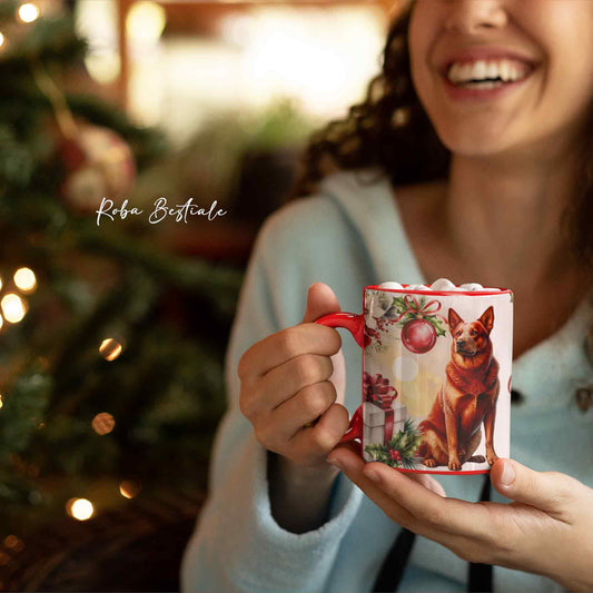 Tazza COZY WINTER - AUSTRALIAN CATTLE DOG Red - In Ceramica, con manico color Oro - 330 ml