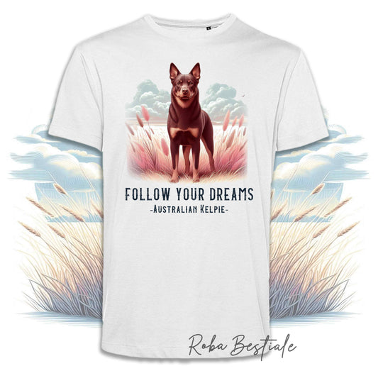 T-Shirt QUOTES "DREAM" - AUSTRALIAN KELPIE Chocolate - Bianca, Uomo o Donna - dalla XS alla 5XL