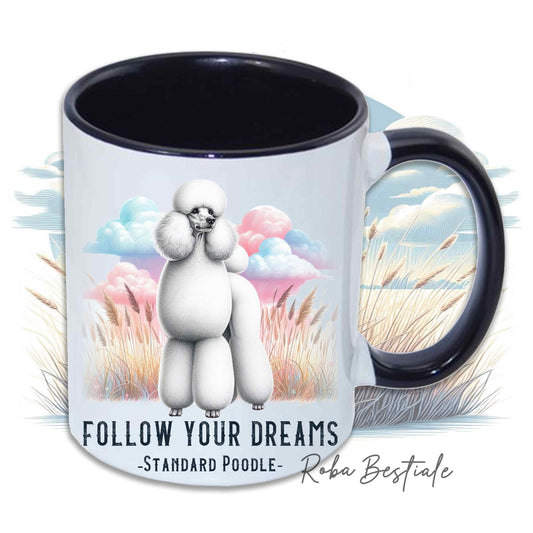 Tazza QUOTES "DREAM" - BARBONE Grande Mole Bianco - In Ceramica, con manico e interno in diversi colori - 330 ml