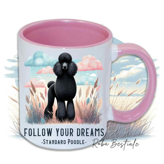Tazza QUOTES "DREAM" - BARBONE Grande Mole Nero - In Ceramica, con manico e interno in diversi colori - 330 ml