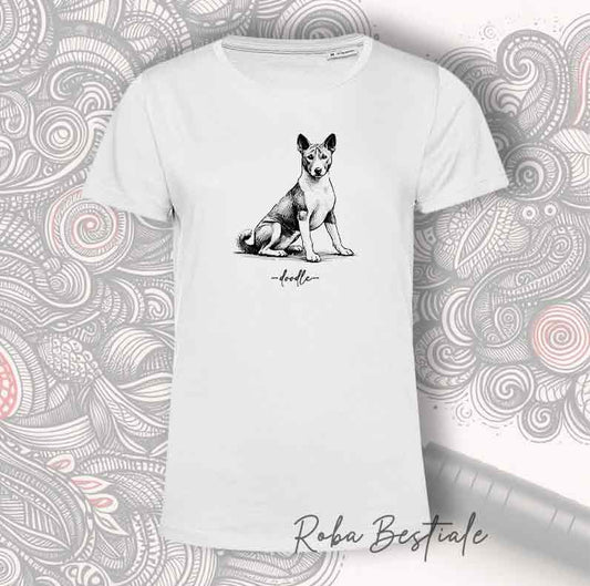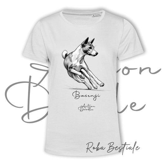 T-Shirt ACTION DOODLE - BASENJI 1 - 100% Cotone, Bianca, Uomo o Donna - dalla XS alla 5XL