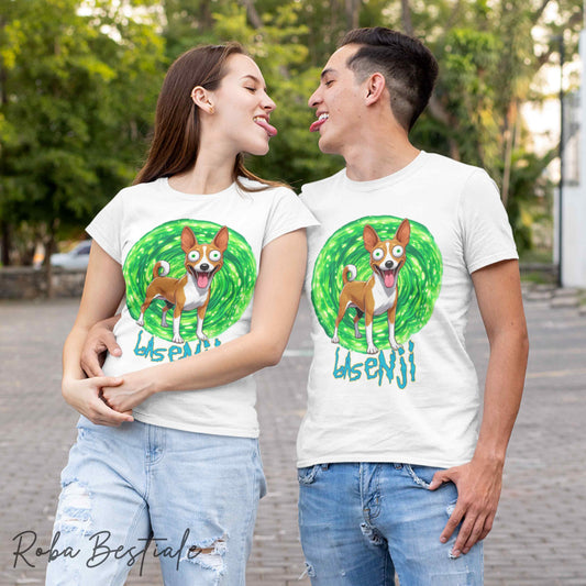 T-Shirt RICK & MORTY - BASENJI Rosso e Bianco - Bianca, dalla XS alla 5XL