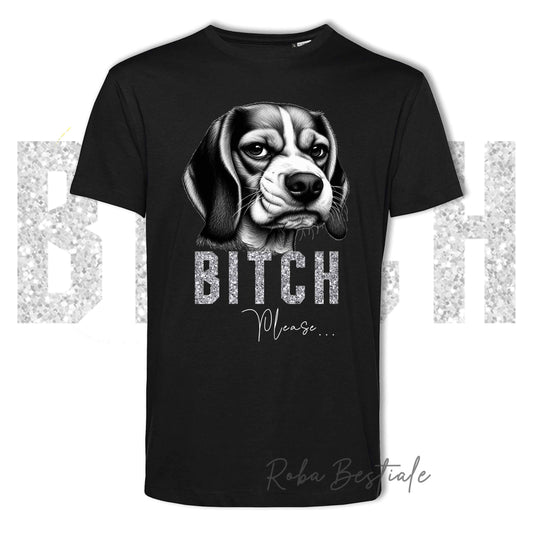 T-shirt BI**H, PLEASE - BEAGLE - Bianca o Nera - Scritta in vinile glitterato Ultra Brillante - dalla XS alla 5XL