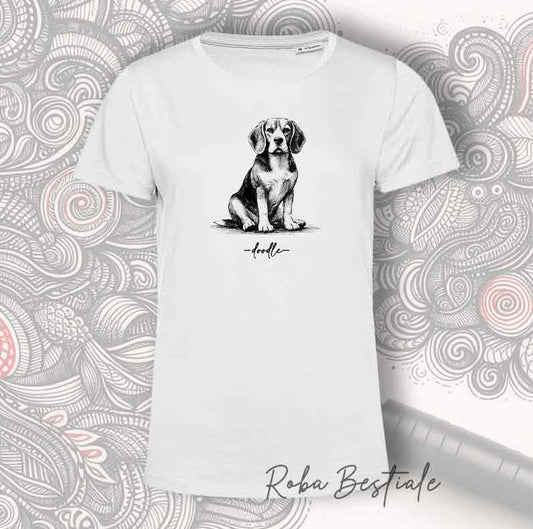 T-Shirt ACTION DOODLE - BEAGLE 1 - 100% Cotone, Bianca, Uomo o Donna - dalla XS alla 5XL