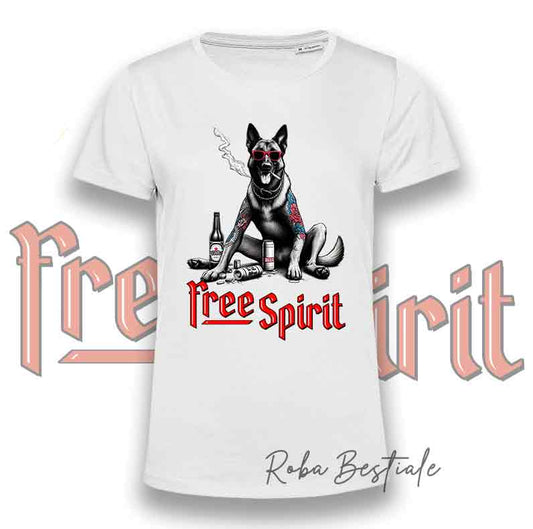 T-Shirt FREE SPIRIT - PASTORE BELGA MALINOIS - Uomo o Donna - dalla XS alla 5XL