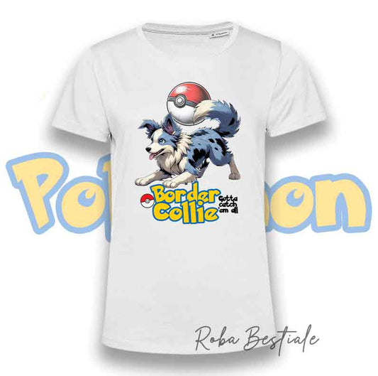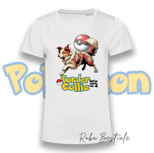 T-Shirt POKEMON - BORDER COLLIE Bianco & Nero