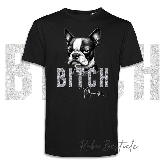 T-shirt BI**H, PLEASE - BOSTON TERRIER - Bianca o Nera - Scritta in vinile glitterato Ultra Brillante - dalla XS alla 5XL