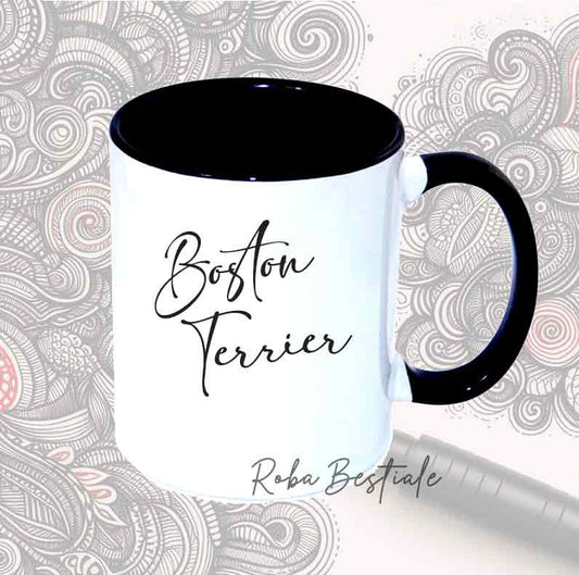 Tazza BI**H, PLEASE - BOSTON TERRIER - In Ceramica, con manico e interno colorato - 330 ml