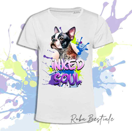 T-Shirt INKED SOUL - BOSTON TERRIER Bianco & Nero