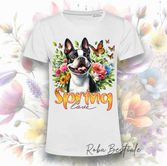 T-Shirt SPRING LOVE - BOSTON TERRIER Bianco & Nero