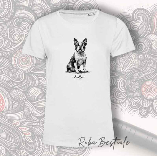T-Shirt ACTION DOODLE - BOSTON TERRIER 1 - 100% Cotone, Bianca, Uomo o Donna - dalla XS alla 5XL
