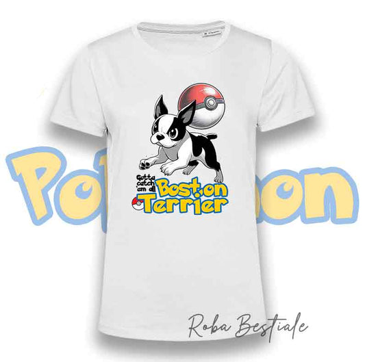 T-Shirt POKEMON - BOSTON TERRIER Bianco & Nero