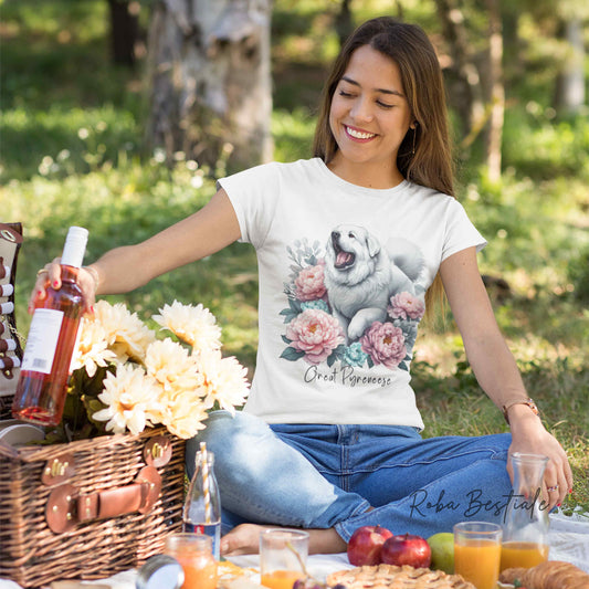 T-Shirt PEONY - CANE DA MONTAGNA DEI PIRENEI - Bianca o Beige, Uomo o Donna, dalla XS alla 5XL
