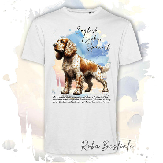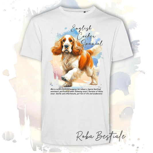 T-Shirt BEHAVIOR - COCKER SPANIEL INGLESE Arancio Roano - Standard FCI - 100% Cotone, Bianca, Uomo o Donna - dalla XS alla 5XL