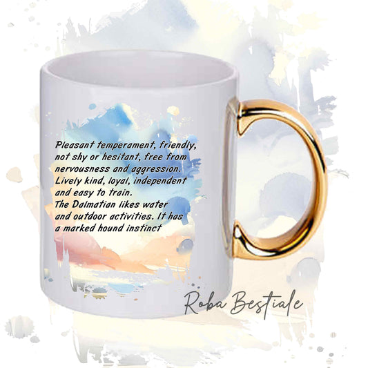 Tazza BEHAVIOR - DALMATA Bianco e Fegato - In Ceramica, con manico dorato - 330 ml