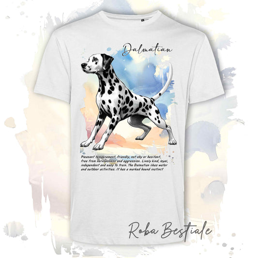 T-Shirt BEHAVIOR - DALMATA Bianco e Fegato - Standard FCI - 100% Cotone, Bianca, Uomo o Donna - dalla XS alla 5XL