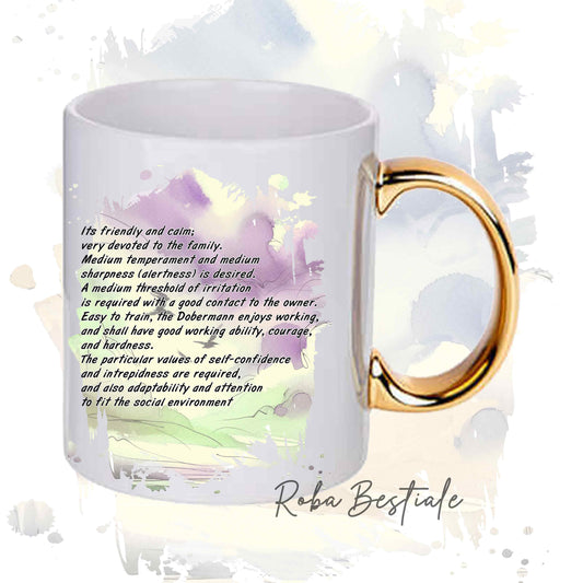 Tazza BEHAVIOR - DOBERMANN Marrone Focato - Standard FCI - In Ceramica, con manico dorato - 330 ml