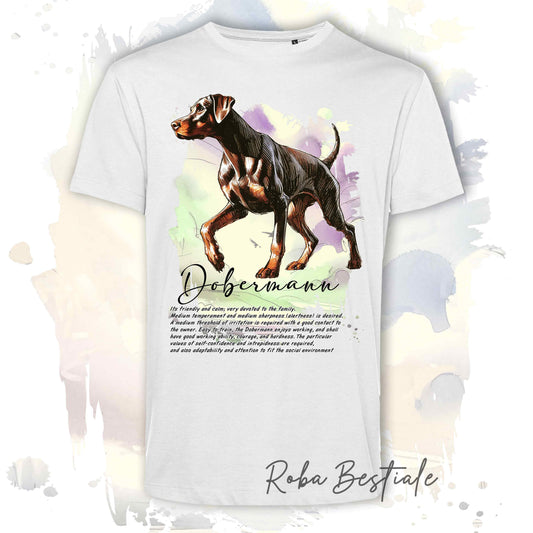T-Shirt BEHAVIOR - DOBERMANN Marrone Focato - Standard FCI - 100% Cotone, Bianca, Uomo o Donna - dalla XS alla 5XL