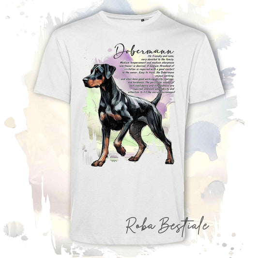 T-Shirt BEHAVIOR - DOBERMANN Nero Focato - Standard FCI - 100% Cotone, Bianca, Uomo o Donna - dalla XS alla 5XL