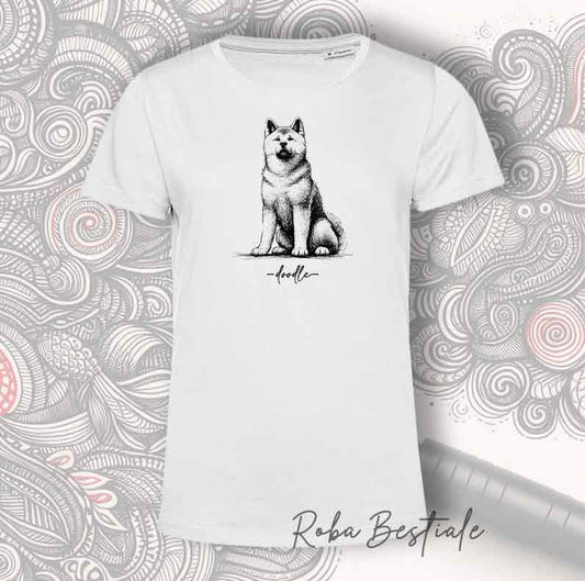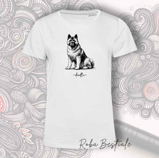 T-Shirt DOODLE - AKITA AMERICANO - 100% Cotone, Bianca, Uomo o Donna - dalla XS alla 5XL