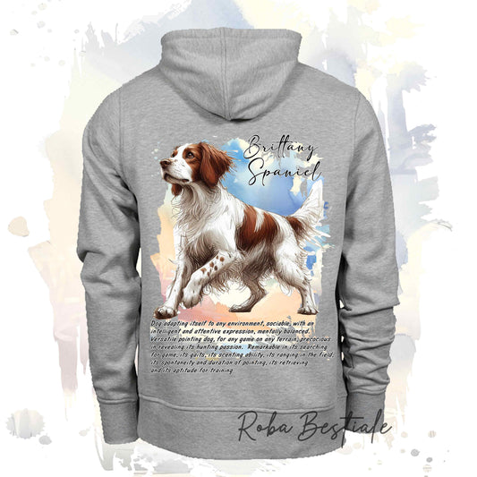Felpa BEHAVIOR - EPAGNEUL BRETON o BRITTANY SPANIEL Bianco Arancio - Standard FCI - Unisex - Grigia - dalla XS alla 3XL
