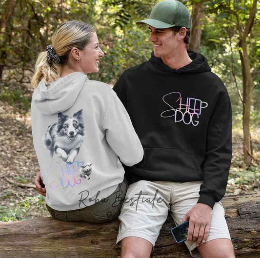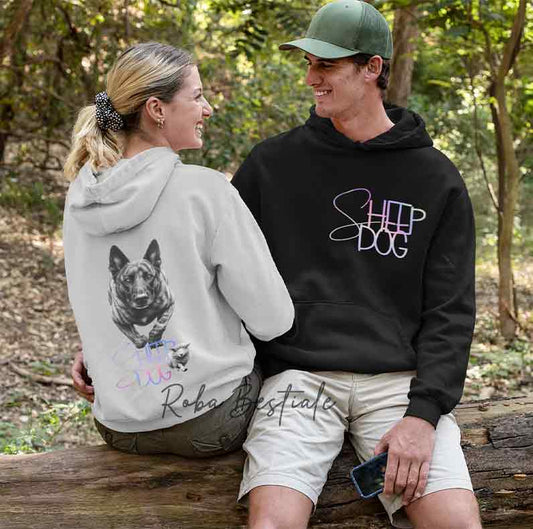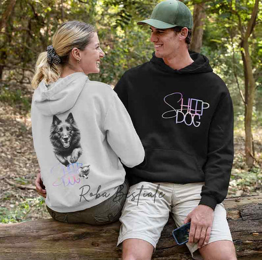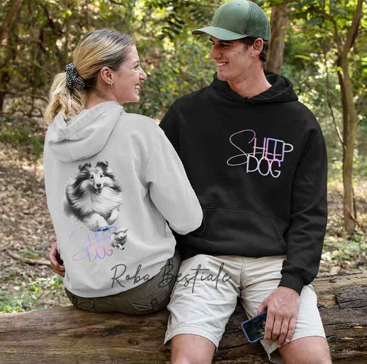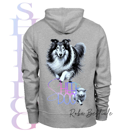 Felpa FLASHY SHEEPDOG - SHETLAND SHEEPDOG - Unisex - Nera o Grigia - dalla XS alla 3XL - Scritta Olografica Cangiante!