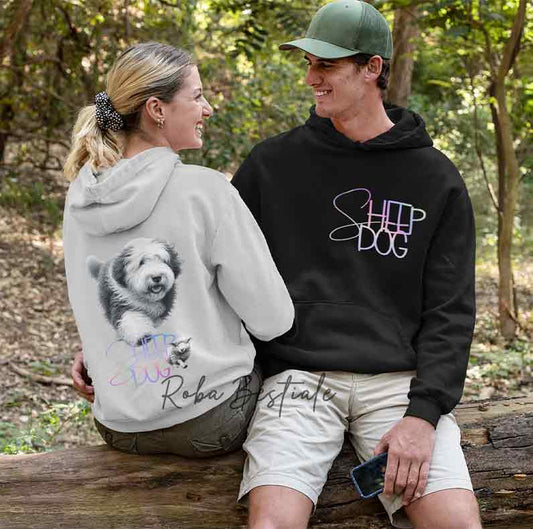 Felpa FLASHY SHEEPDOG - OLD ENGLISH SHEEPDOG - Unisex - Nera o Grigia - dalla XS alla 3XL - Scritta Olografica Cangiante!