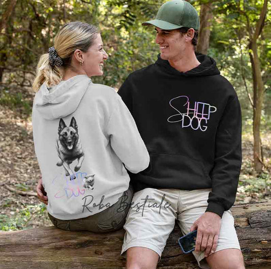 Felpa FLASHY SHEEPDOG - PASTORE OLANDESE - Unisex - Nera o Grigia - dalla XS alla 3XL - Scritta Olografica Cangiante!