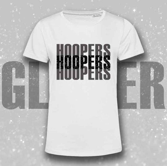 T-Shirt SOLO SCRITTE - HOOPERS - Bianca, scritta in Vinile GLITTER Ultra Brillante in colore a scelta - Uomo o Donna - dalla XS alla 5XL