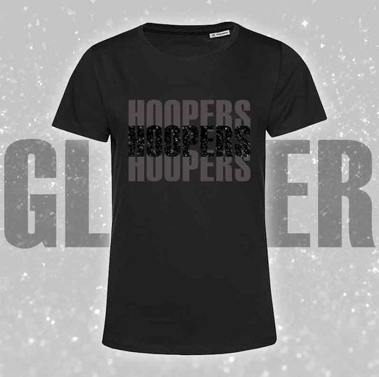T-Shirt SOLO SCRITTE - HOOPERS - Nera, scritta in Vinile GLITTER Ultra Brillante in colore a scelta - Uomo o Donna - dalla XS alla 5XL