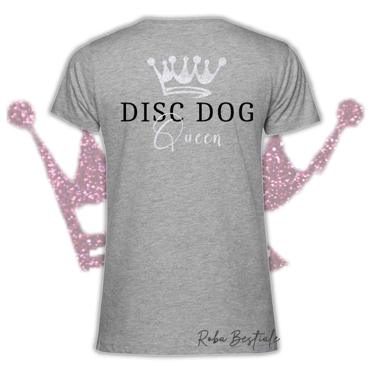 T-Shirt HRH - DISC DOG QUEEN - Uomo o Donna, BASIC COLORS - Applicazioni BIANCO GLITTER! - dalla XS alla 5XL