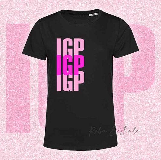 T-Shirt SOLO SCRITTE - IGP - Nera, scritta in Vinile in colore a scelta - Uomo o Donna - dalla XS alla 5XL