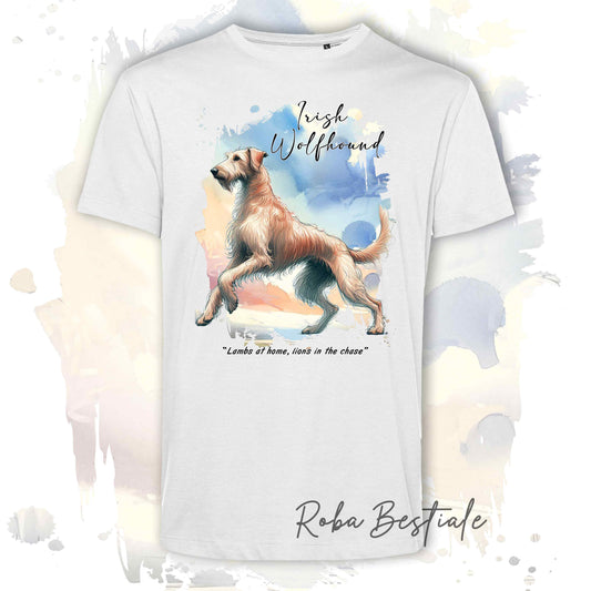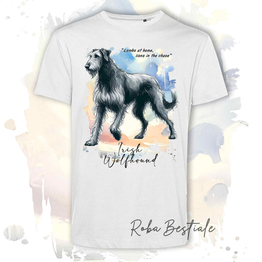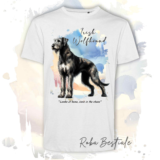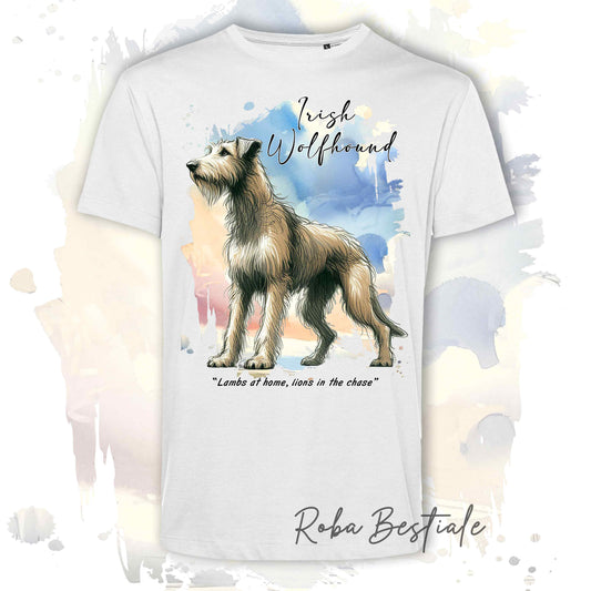 T-Shirt BEHAVIOR - IRISH WOLFHOUND Tigrato - Standard FCI - 100% Cotone, Bianca, Uomo o Donna - dalla XS alla 5XL