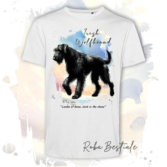 T-Shirt BEHAVIOR - IRISH WOLFHOUND Nero - Standard FCI - 100% Cotone, Bianca, Uomo o Donna - dalla XS alla 5XL