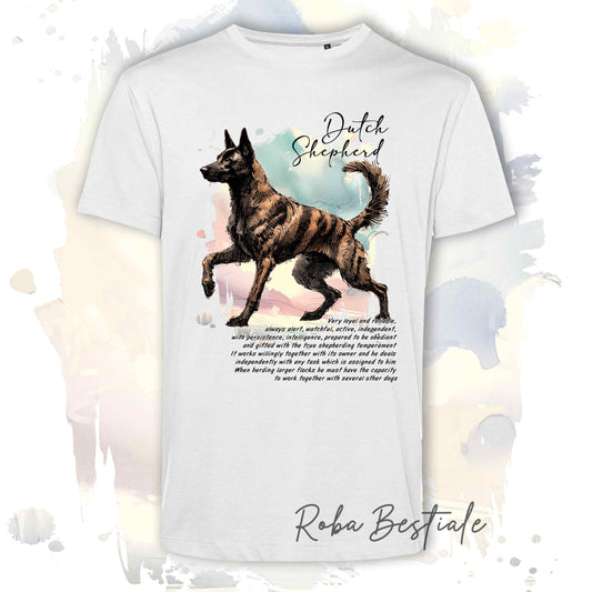 T-Shirt BEHAVIOR - PASTORE OLANDESE a Pelo Corto - Standard FCI - 100% Cotone, Bianca, Uomo o Donna - dalla XS alla 5XL