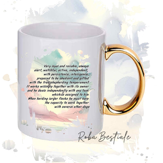 Tazza BEHAVIOR - PASTORE OLANDESE a Pelo Corto - Standard FCI - In Ceramica, con manico dorato - 330 ml