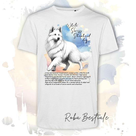 T-Shirt BEHAVIOR - PASTORE SVIZZERO BIANCO - Standard FCI - 100% Cotone, Bianca, Uomo o Donna - dalla XS alla 5XL