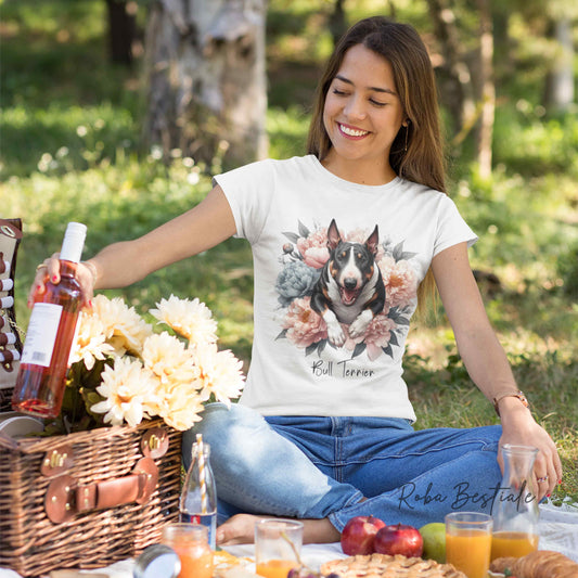 T-Shirt PEONY - BULL TERRIER Tricolore - Bianca, Uomo o Donna - dalla XS alla 5XL