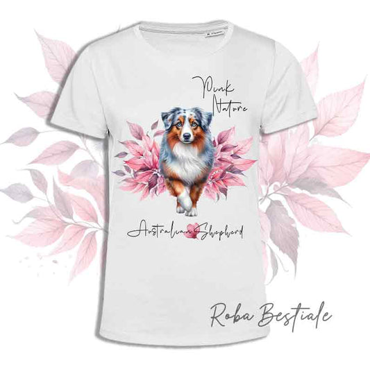 T-Shirt PINK NATURE - AUSTRALIAN SHEPHERD Blue Merle - Uomo o Donna - dalla XS alla 5XL