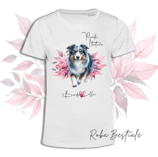 T-Shirt PINK NATURE - BORDER COLLIE Blue Merle - Uomo o Donna - dalla XS alla 5XL