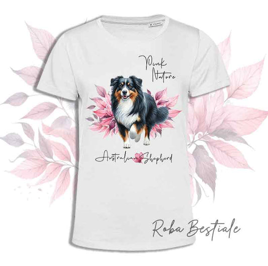 T-Shirt PINK NATURE - AUSTRALIAN SHEPHERD Black Tricolor - Uomo o Donna - dalla XS alla 5XL