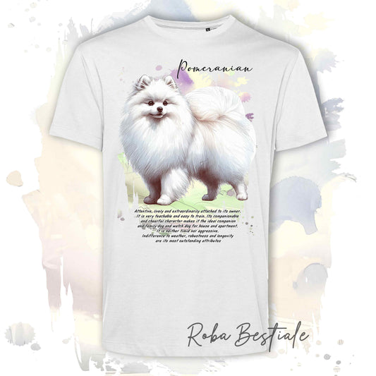 T-Shirt BEHAVIOR - POMERANIA - SPITZ TEDESCO TOY Bianco - Standard FCI - 100% Cotone, Bianca, Uomo o Donna - dalla XS alla 5XL