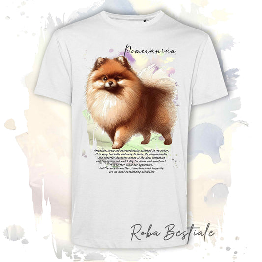 T-Shirt BEHAVIOR - POMERANIA - SPITZ TEDESCO TOY Marrone - Standard FCI - 100% Cotone, Bianca, Uomo o Donna - dalla XS alla 5XL