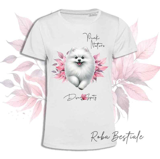 T-Shirt PINK NATURE - SPITZ TEDESCO NANO - POMERANIA Bianco - Uomo o Donna - dalla XS alla 5XL